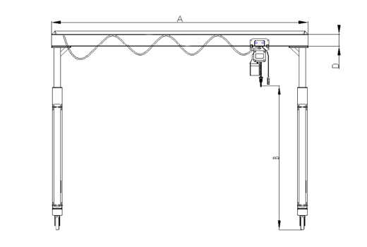 | 型號(hào) | 額定載重(T) | 總高度(MM) | 額定吊高(MM) | 外跨(MM) | 內(nèi)跨(MM) | H值(MM) |